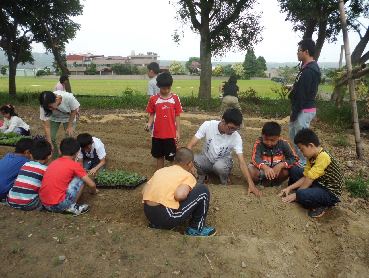 103.09.12這次的田間施肥活動由農友親自帶領學童下田施肥,還有觀察稻子成長的情況,而夏季的稻田中,生物活動較豐富,如田裡的青蛙和空中飛不停的蜻蜓及無毒無害的小蛇,以及在田間意外發現的鳥蛋 ,讓施肥體驗活動出現新奇意外的小插曲;本課程安排了自然農耕體驗課程,最特別的是利用校內後方一塊已經荒廢許久的空地,而學童們分工合作清理出一塊可耕種的菜園地,自己親身體驗如何除草整地、做菜畦。103.09.03 自然農耕體驗種植的是安全無毒蔬果,這也讓學童真正體會到農民的辛苦,需讓學童抓菜蟲、除草、澆水,施肥.通通自己動手來,尤其是天天都必須面對的『蟲蟲危機』這也都讓課程更加有意義。
