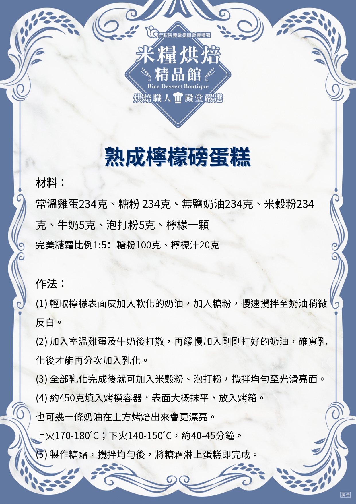 常溫雞蛋234克、糖粉234克、鹽奶油234克、米粉234克、牛奶5克、泡打粉5克、檸檬一顆