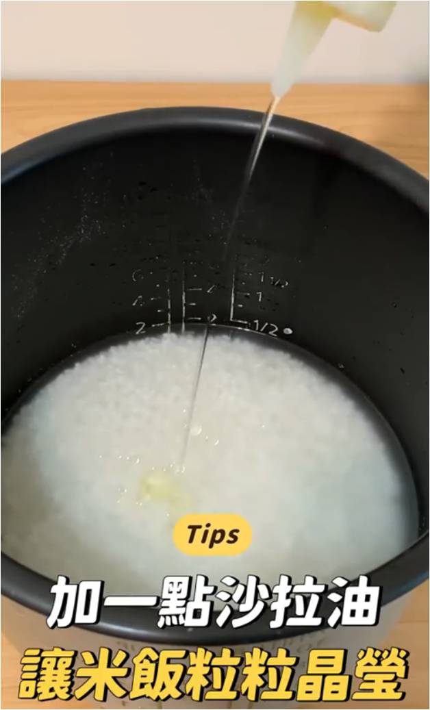 3.加一點沙拉油,讓米飯粒粒晶瑩