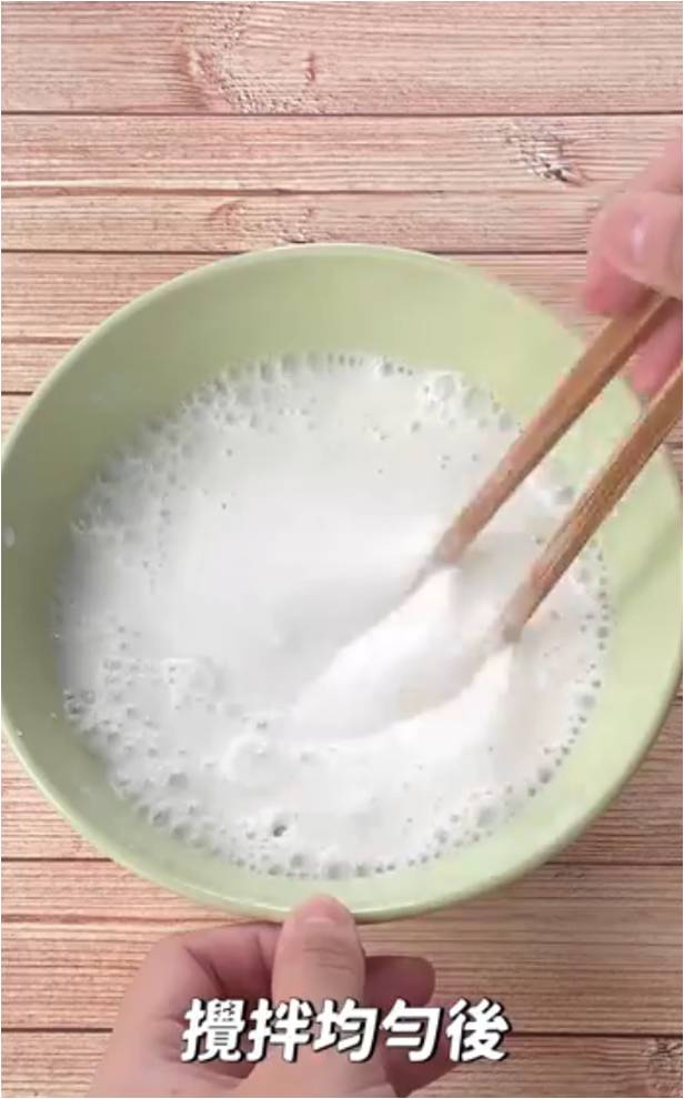 2.攪拌均勻後,打一顆蛋,再次攪拌均勻