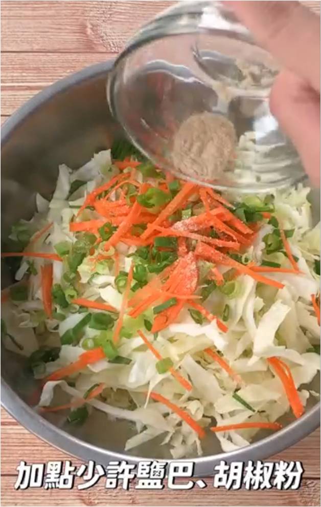 3.將高麗菜切絲(煎餅比較不容易碎掉),放入於另一個鍋中