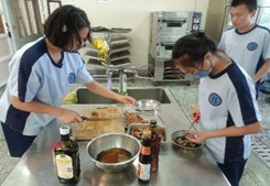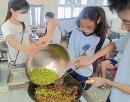 本課程以國產白米為主軸,結合香菇、千張與毛豆等在地食材,設計出兼具營養與環保理念的「創意蔬食油飯」。課程強調健康飲食與節慶米食文化的融合,透過實作讓學生體驗米食烹調過程,並學習食材搭配、調味與均衡飲食觀念。此創意料理不僅展現米食多元應用,也呼應減碳、惜食的永續精神。