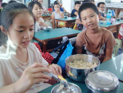帶領北成國小4年9班學生品嘗白米、糙米及胚芽米口感及營養介紹