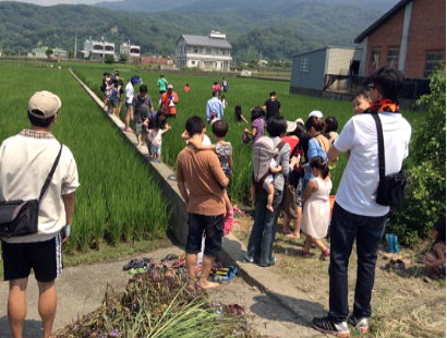 2015年9月12日辦理農事體驗活動,帶領參加人員下田認識生態及五感體驗,觀察鴨子動作,認識田裡動植物,雜草.水田管理.教導參加人員如何行走於水稻田