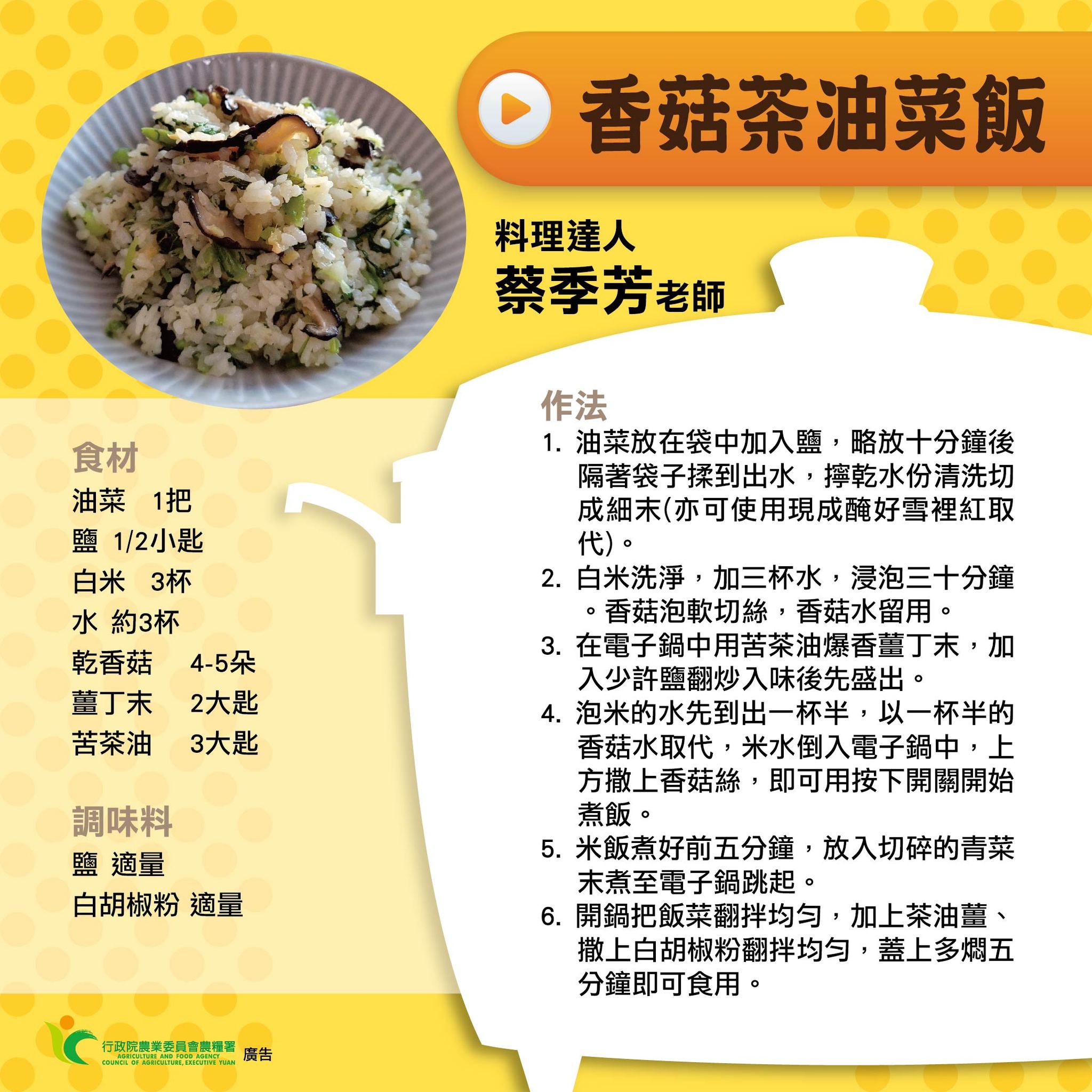 【香菇茶油菜飯】媽媽廚神-蔡季芳老師