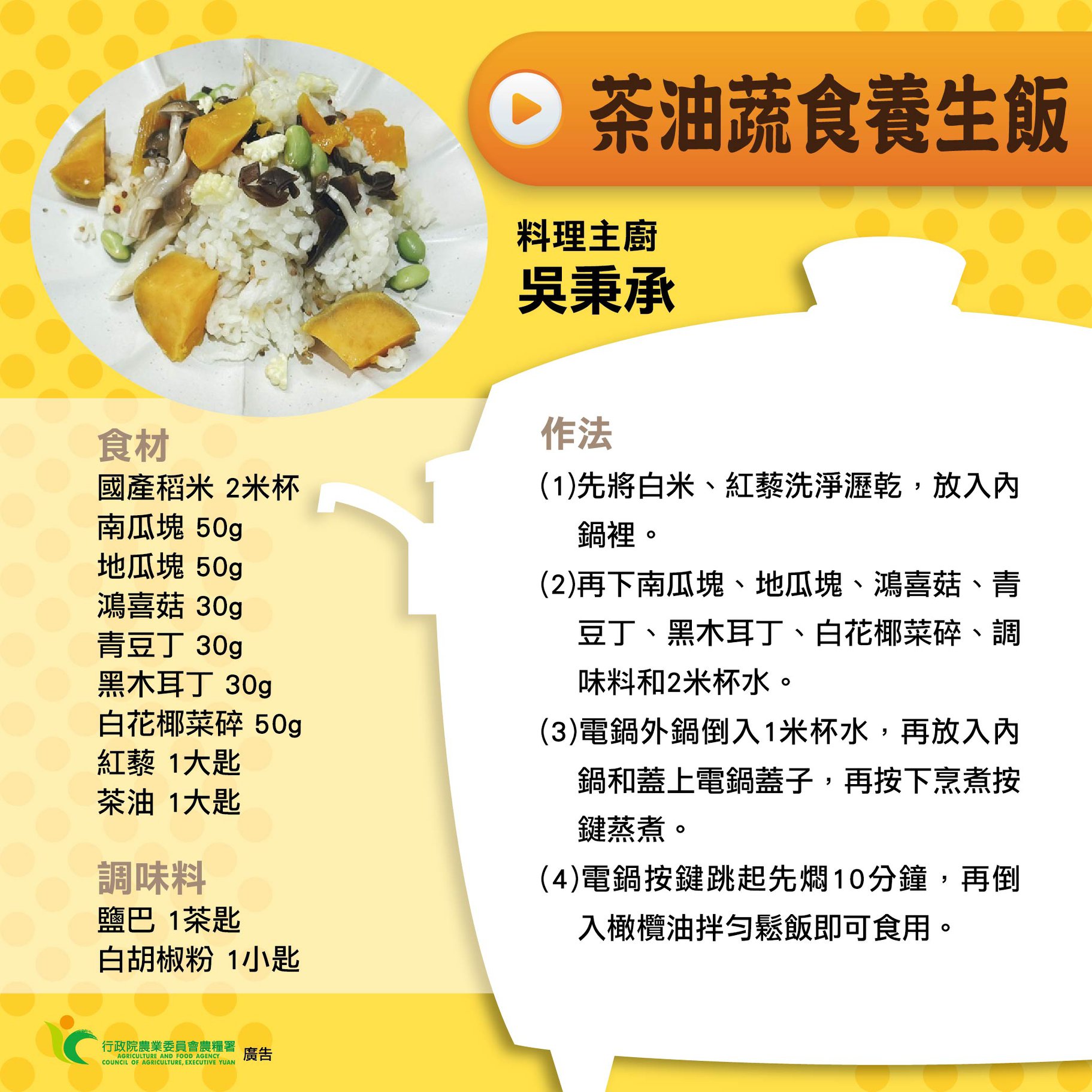【茶油蔬食養生飯】型男主廚-吳秉承師傅
