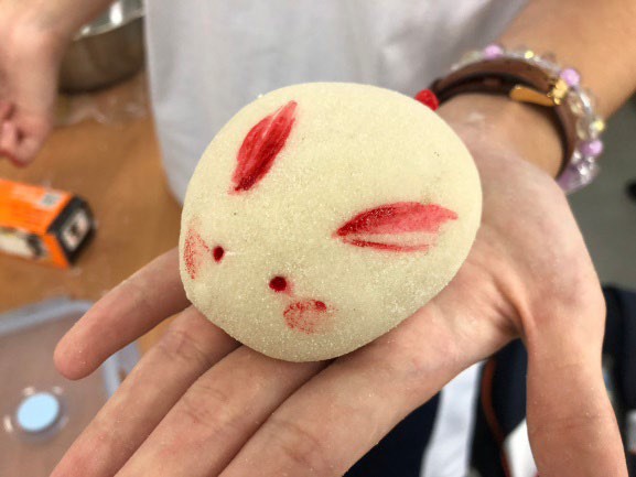 →鬆弛20分→揉成糰→分割→塑型→上色→完成。