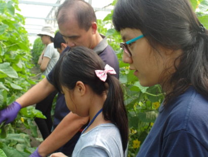 104年7月17-19日在本人溫室與大葉大學合辦青少年產地旅行,針對農作物特性及成長過程做介紹。本次教學是小黃瓜整枝、採收並做成小黃瓜料理、手工皂等產品。讓青少年直接接觸到食材的源頭及成長過程,更珍惜我們的食材,除了料理食用外並可做成加工品,讓農產品用途更廣泛。